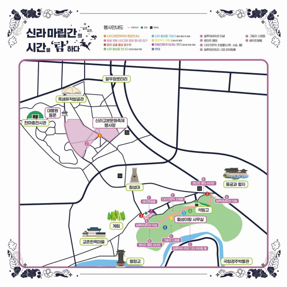 - 쪽샘유적(분포조사)➡쪽샘유적발굴관(쪽샘44호분)➡대릉원➡천마총전시관