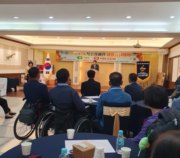 [오마이경주/경주시민신문=김경미기자] (사)한국척수장애인경북협회 경주시지회(지회장 노이조)는 지난 6일 웨딩파티엘에서 ‘제15회 척수장애인 재활증진대회’를 가졌다.