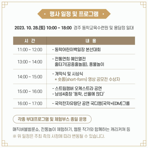 - 행사 일정 : 2023. 10. 28.(토) 10:00 ~ 18:00