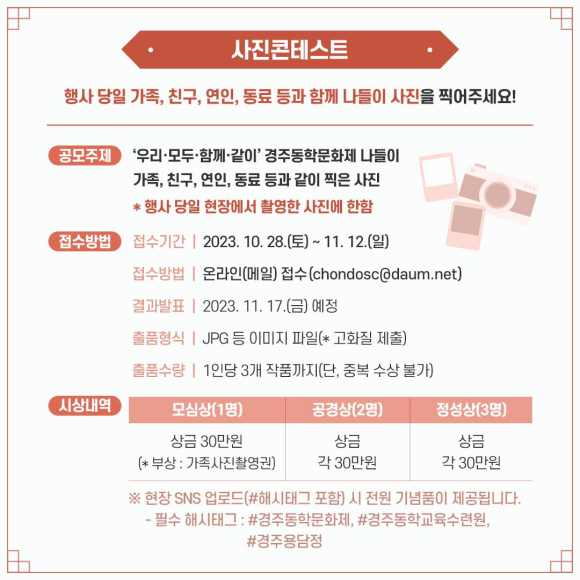 다양한 행사 프로그램과 공모전이 준비되어 있으니 많은 관심 부탁드립니다.