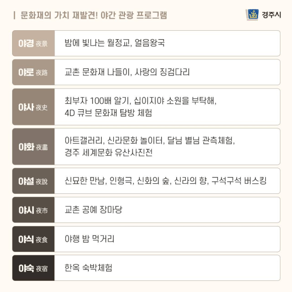 역사와 전설 그리고 신라 속의 조선 문화를 오감으로 만나는 아름다운 추억 여행을 즐겨보세요!