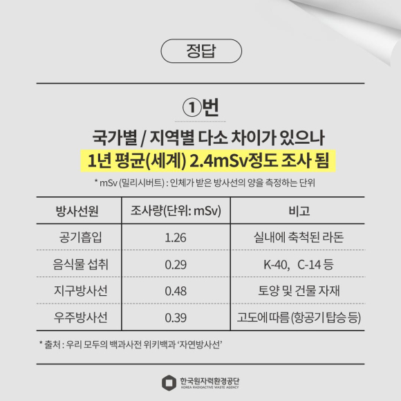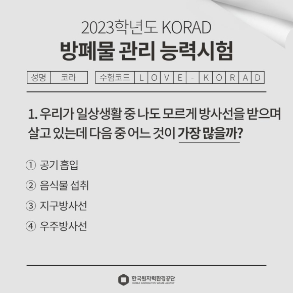 퀴즈로 알아보는 생활 속 방사선! 코라와 함께 Go!