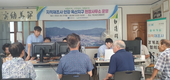 | ↑↑ 올 8월 옥산4리 마을회관에서 지적재조사 현장사무소 운영 모습 |