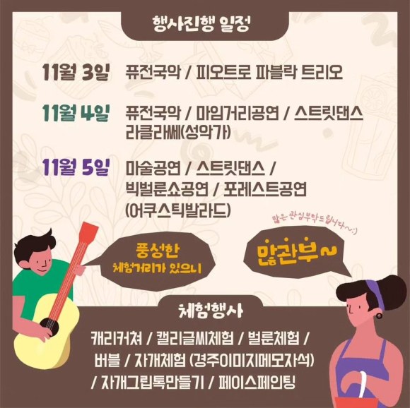 퓨전국악 마임공연 스트릿댄스까지 다양한 행사로 볼거리가 가득