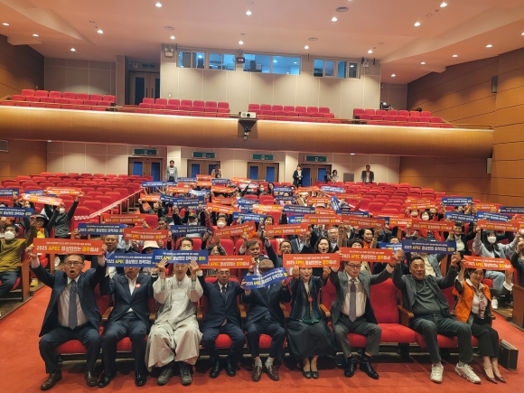 또 경주시에서 중점 추진하고 있는 2025 APEC 정상회의 경주유치 퍼포먼스와 100만인 서명운동도 함께 펼치며 신장장애인들도 경주유치에 힘을 보탰다.