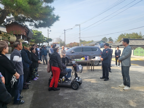 | ↑↑ 경주시가 지난 3일 숲머리마을 일원에서 지역 주민들이 참석한 가운데 ‘숲머리마을 도시계획도로 개통식’을 개최하고 있다. |
