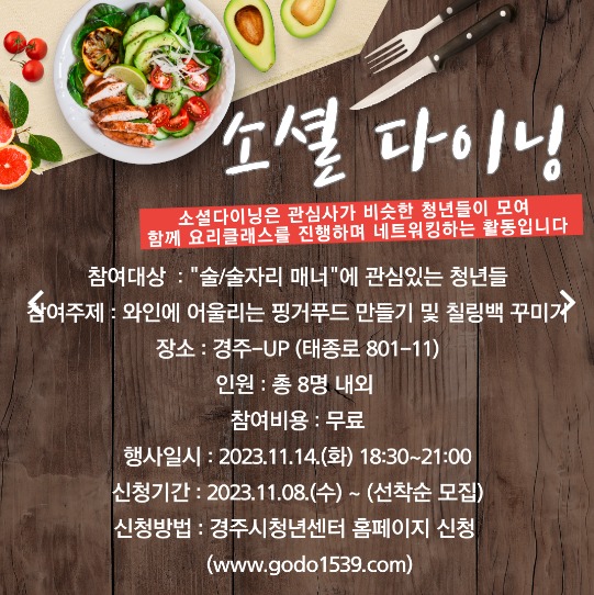 - 신청방법 : 경주시청년센터 홈페이지 신청 (www.godo1539.com)