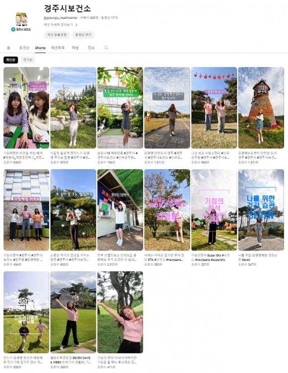 이밖에도 경주시 보건소가 운영 중인 인스타그램과 최근 개설한 유튜브 등 SNS채널을 활용해 재미있고 유익한 댄스, 콩트 등 대시민 감염병 예방 홍보 영상물 17편을 자체 제작해 포스팅했다.