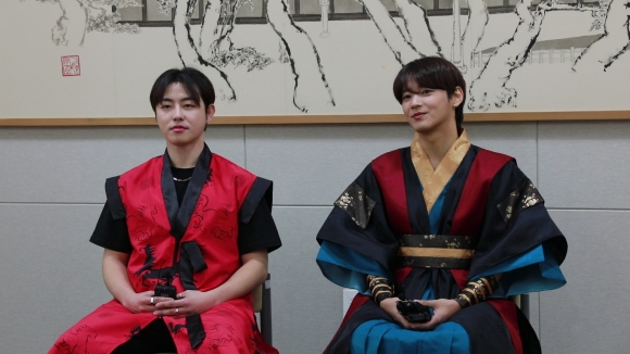 | ↑↑ 더 쇼! 신라하다의 처영역을 맡은 세용(오른쪽)과 유권이 인터뷰를 하는 모습(사진제공=경주엑스포대공원) |