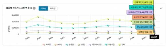 | ↑↑ 업종별 신용카드 소비액 추이 |