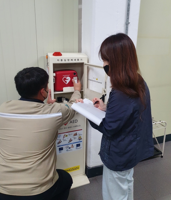 점검반은 현장과 서면 점검을 병행하며 △장비 작동여부 △관리책임자 지정 및 응급처치교육 이수 여부 △매월 점검 일지 등 중점 점검한다.