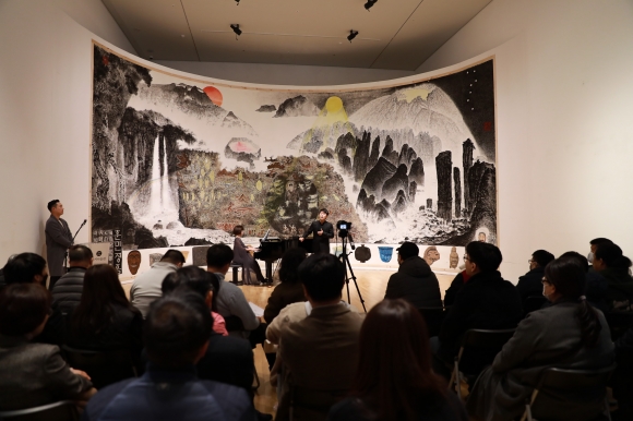 이어 박대성 화백의 대작 ‘코리아판타지’ 앞에서 열린 음악회에 참석해 김효순씨의 피아노 연주와, 카운터 테너 채 원씨의 노래를 감상했다.