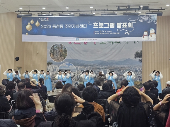[오마이경주=경주시민신문기자] 경주시 동천동 주민자치위원회(위원장 권진영)는 1년간 주민들을 위해 운영한 프로그램의 결실을 맺는 발표회를 지난 14일 동천동 행정복지센터(동장 김은락)에서 개최했다.