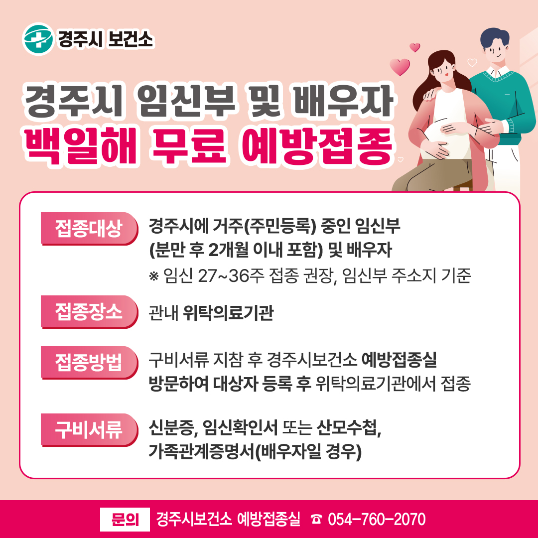 경주시에 거주(주민등록) 중인 임신부 (분만 후 2개월 이내 포함) 및 배우자