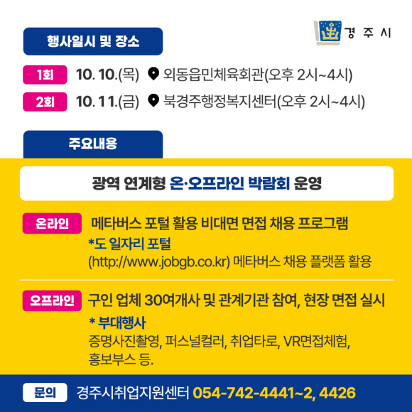 10월 10일~11일, 경주에서 완벽한 취업 찬스를 만나보세요!