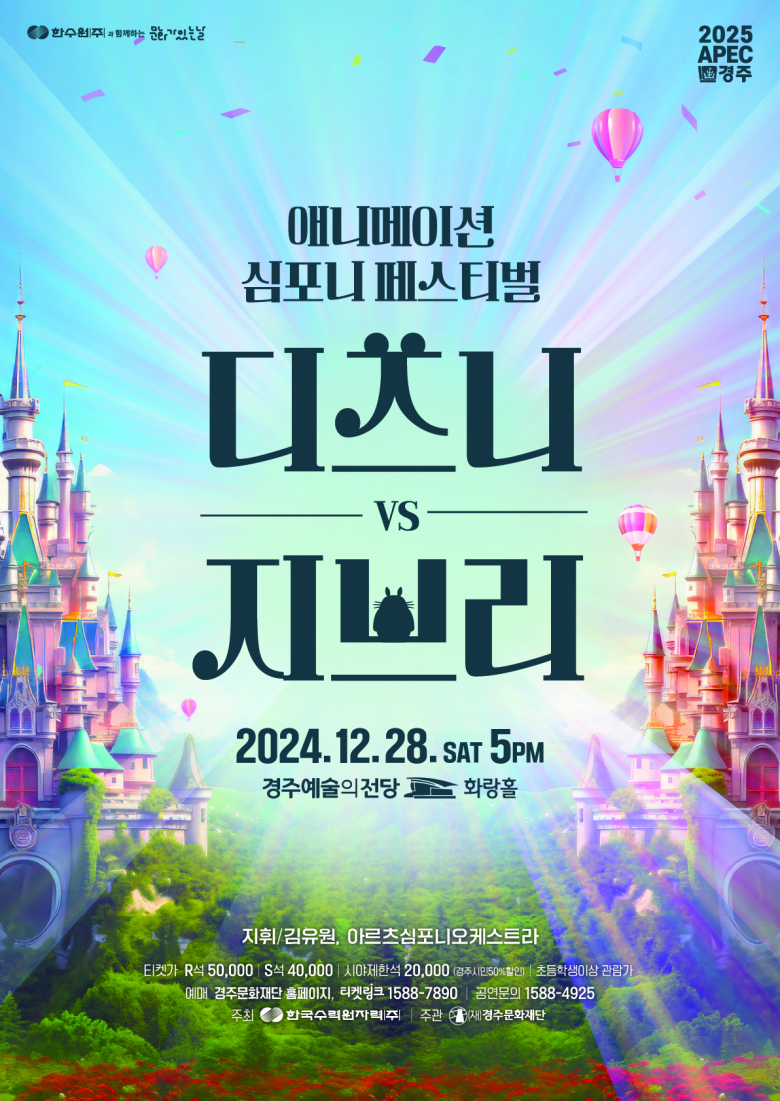 한국수력원자력(주)과 (재)경주문화재단이 개최하는 ‘한수원과 함께하는 문화가 있는 날’ 12월 프로그램의 일환으로 진행되는 본 공연은 대중들로부터 큰 사랑을 받는 양대 애니메이션 스튜디오인 월트 디즈니와 스튜디오 지브리의 유명 OST를 함께 즐길 수 있다.