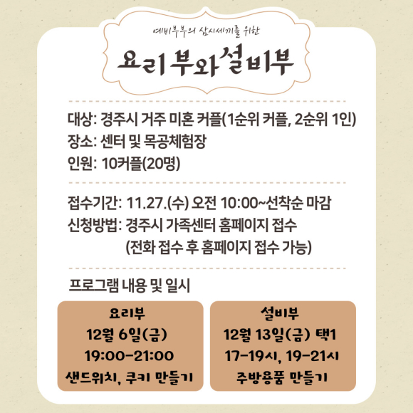 [경주시 가족센터] 예비 부부의 삼시세끼를 위한 요리부와 설비부