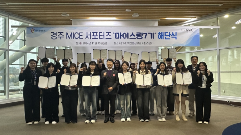 [이재영 기자] 지난(15일) 경주화백컨벤션뷰로는 경주 하이코(HICO)에서 2024년 경주 MICE 서포터즈 '마이스랑'(이하 마이스랑) 7기 해단식이 진행됐다.