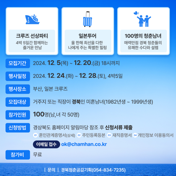 ‘경북 솔로마을 해외크루즈 매칭투어’ 참가자를 모집합니다!