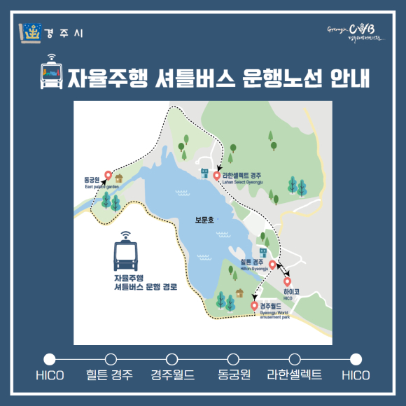 * 운영 노선 및 시간 : 하이코.힐튼 - 경주월드 - 동궁원 - 라한셀렉트