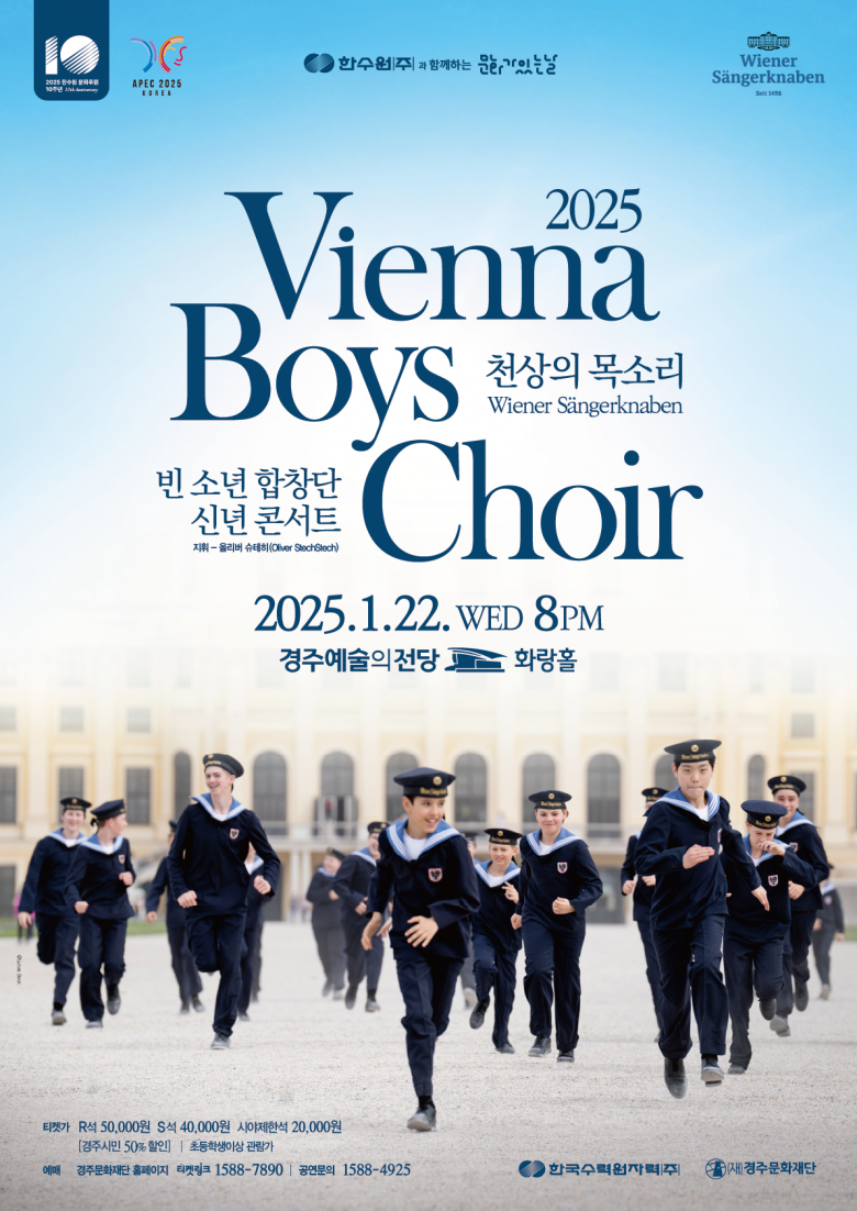 한수원 문화후원사업 10주년을 기념해 경주예술의전당 설립 이래 최초로 ‘빈 소년 합창단(Wiener Sängerknaben)이 방문한다. 신성 로마 제국 황제 막시밀리안 1세에 의해 1498년 설립된 이 합창단은 2025년 창립 527년을 맞이하며 프랑스의 파리 나무 십자가 소년 합창단, 독일의 퇼처 소년 합창단과 더불어 세계 3대 합창단 중 하나로 손꼽힌다.