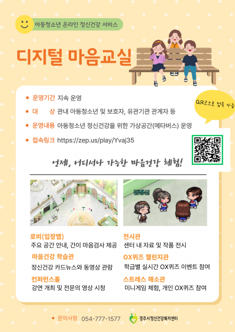 박재홍 경주시정신건강복지센터장은 “이번 서비스가 청소년들이 정신건강 정보를 보다 쉽게 접하고 도움을 받을 수 있는 기회가 되길 바란다”고 전했다.