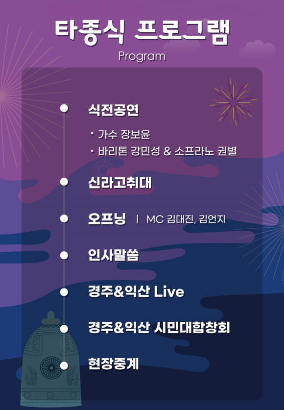 - 프로그램 : 타종행사/경주&익산 시민대합창회/떡국나눔행사 등