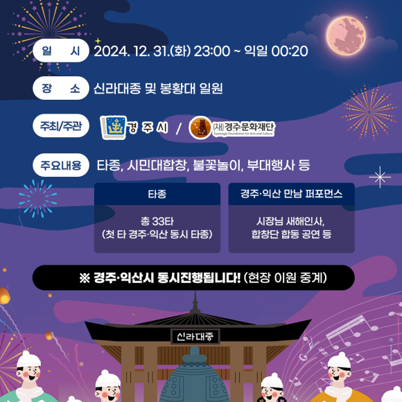 • 타종 : 총 33타(첫 타 경주·익산 동시 타종)