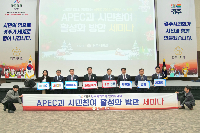 이동협 경주시의회 의장은 “연말의 바쁜 일정에도 세미나에 참석해 주신 많은 시민분들께 진심으로 감사드린다.”면서 “이번 세미나가 2025 APEC 정상회의의 성공적인 개최를 위한 힘을 모으고, 경주가 새롭게 도약하는 계기가 되길 기대한다.”고 말했다.