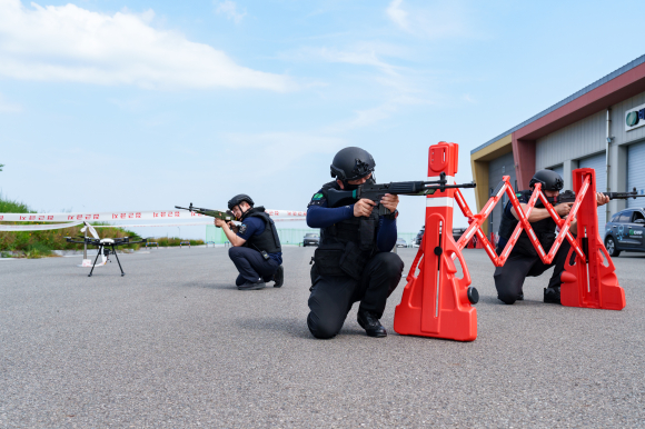 훈련은 실제 상황을 가정하여 3단계로 진행됐으며, △드론에 대한 주민 신고 및 유관기관 상황전파, △탐지장비에 의한 드론 위치 탐지 및 식별, 드론 위협 증가에 따른 비상대응조직 운영, △불법 드론 재밍, 월성본부 청경대와 해병대 기동타격대 출동 및 추락 드론 원점보존, 환자 발생에 따른 응급조치 및 후송, 화재진화 단계로 진행됐다.