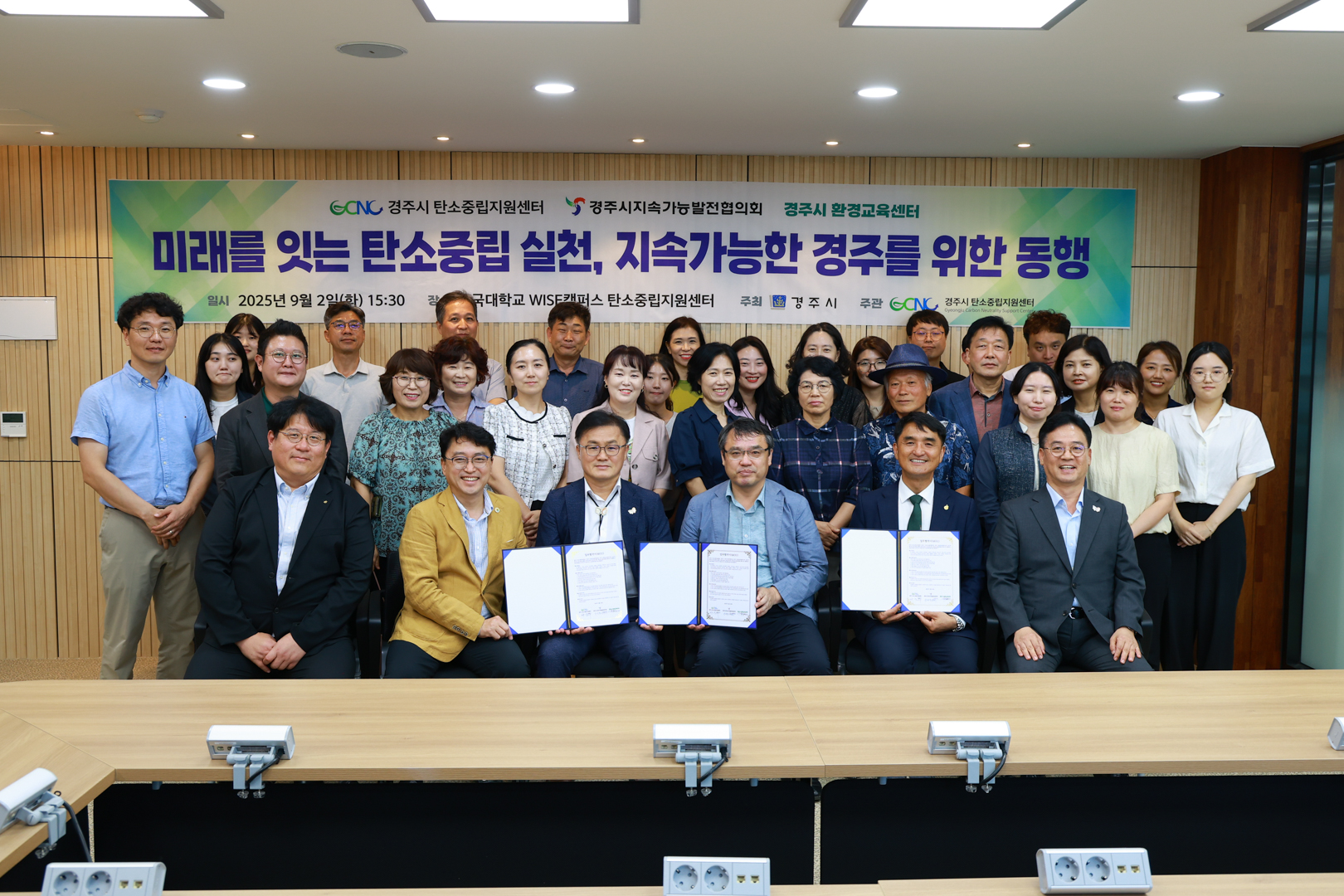 이날 행사에는 송호준 경주시 부시장, 반상우 동국대 WISE캠퍼스 산학협력단장을 비롯해 탄소중립지원센터, 환경교육센터, 지속가능발전협의회 등 3개 기관장이 참석했다.