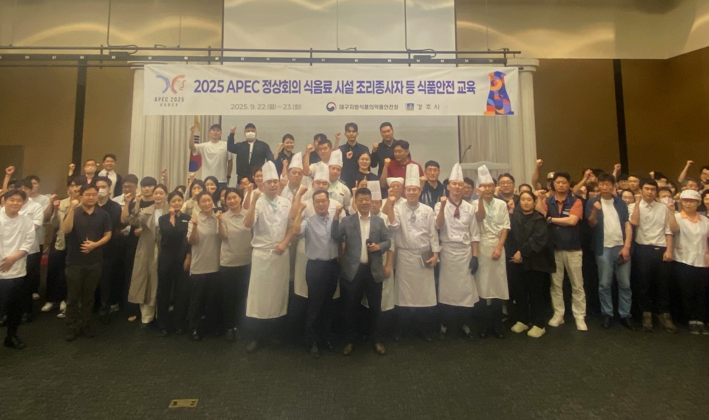 경주시는 2025 APEC 정상회의를 앞두고 대구지방식품의약품안전청과 협력해 지난 22일부터 23일까지 양일간 더케이호텔 경주에서 식음료시설 조리종사자를 대상으로 위생‧안전 교육을 실시했다고 밝혔다.