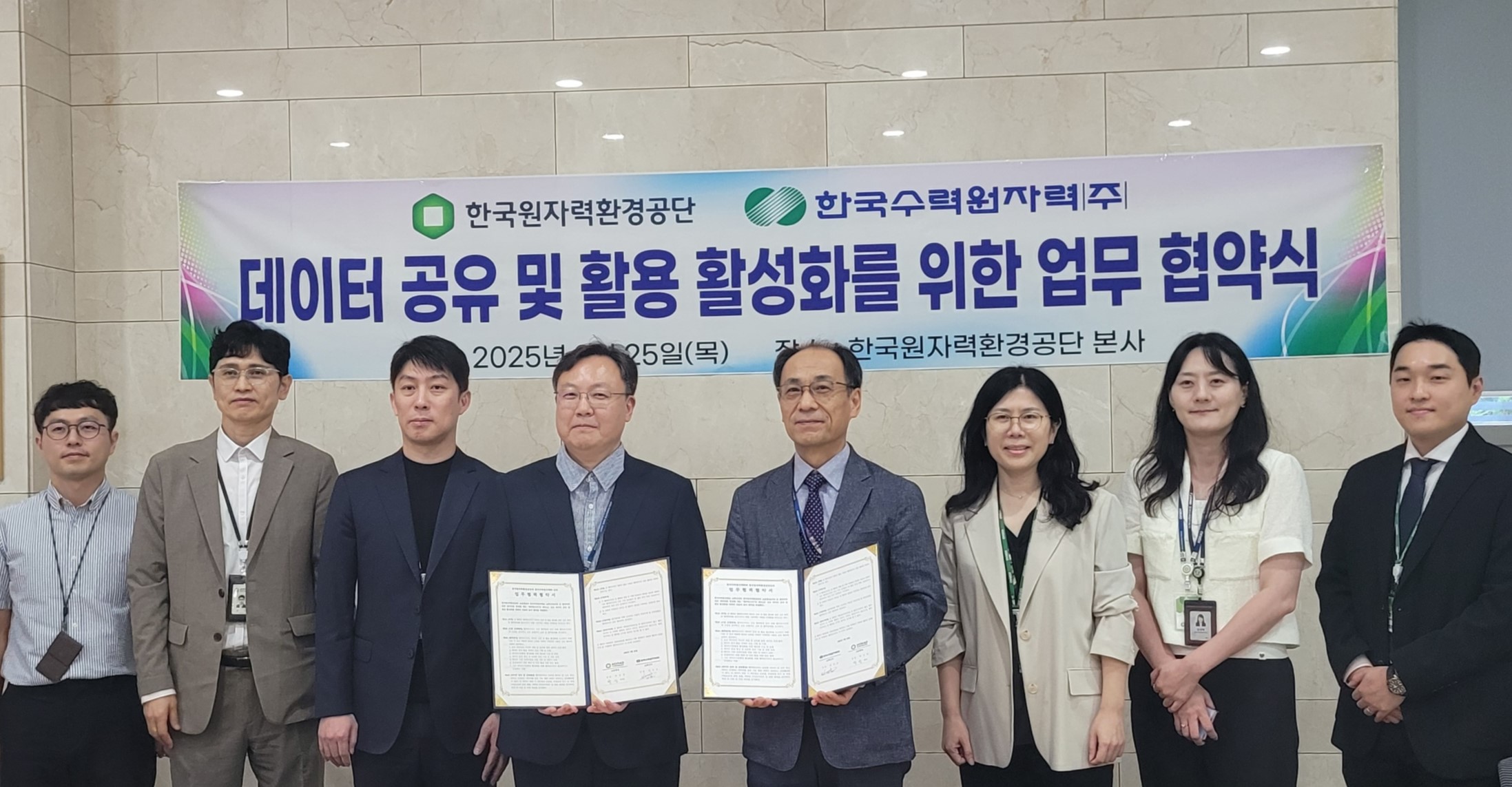 한국원자력환경공단(이사장 조성돈)은 지난 25일 본사에서 한국수력원자력(사장 직무대행 전대욱)과 데이터 공유 및 활용 활성화를 위한 업무협약(MOU)을 체결했다.