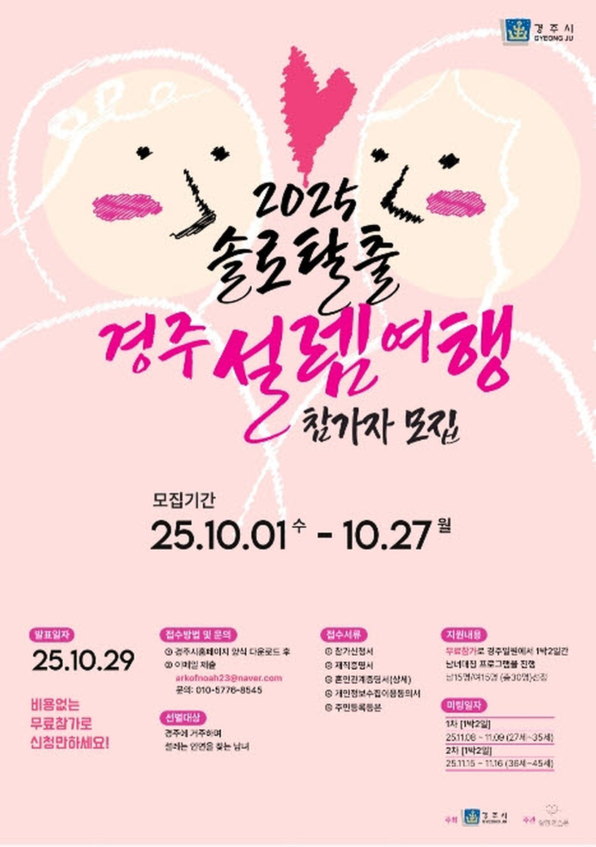 최종 참가자는 10월 29일 개별 통보할 예정이며, 모집 공고와 신청서류는 경주시 홈페이지에서 확인할 수 있다.