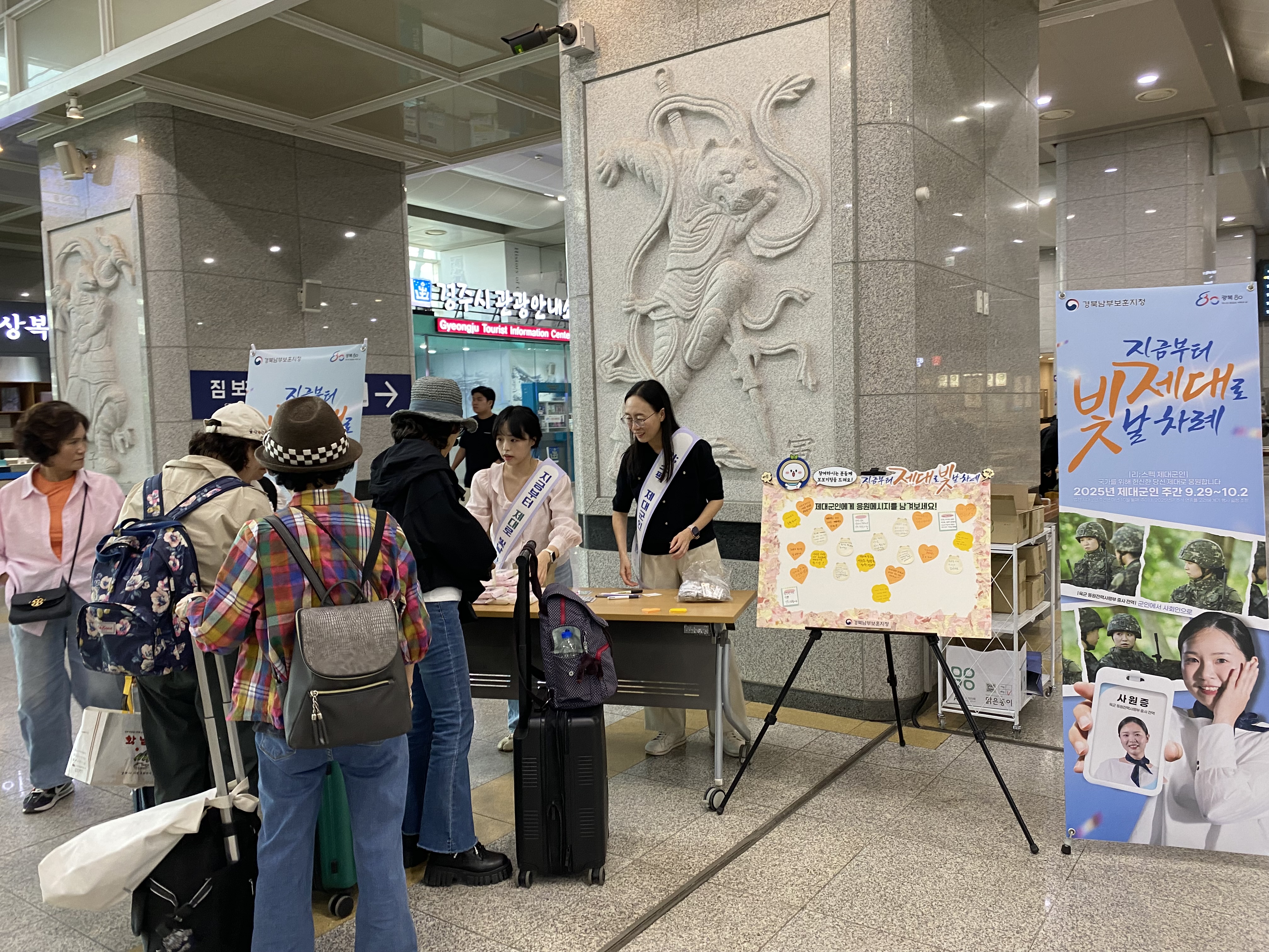경북남부보훈지청(지청장 정한송)에서는 지난 30일 경주역(KTX)에서 2025년 제대군인 주간(9.29.~10.2.)을 맞아 제대군인 주간을 알리기 위해 특별 홍보 캠페인을 실시했다.