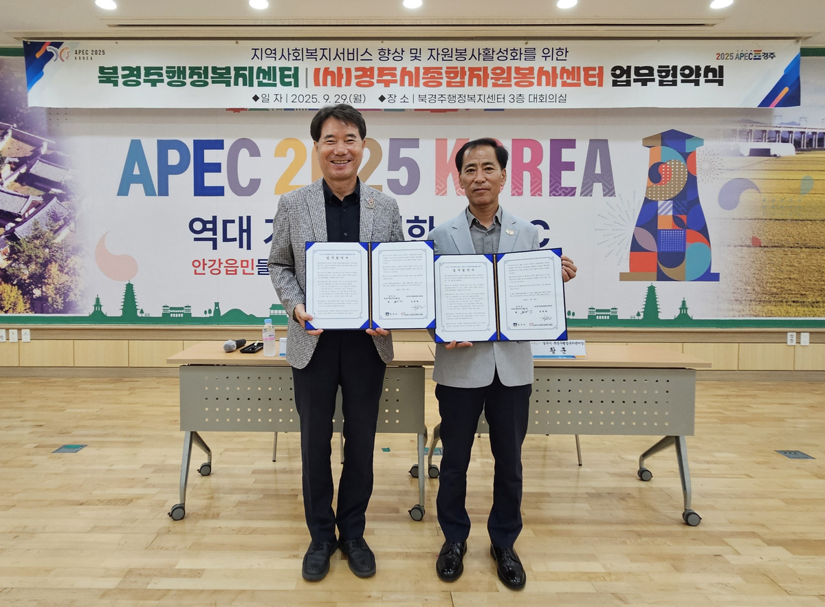 북경주행정복지센터(센터장 황훈)와 (사)경주시종합자원봉사센터(센터장 김동엽)는 지난 29일 지역사회복지 증진과 자원봉사 활성화를 위한 업무협약을 체결했다.