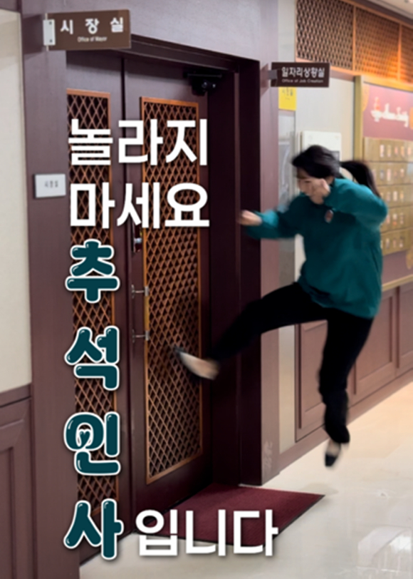12일 경주시에 따르면 명절을 앞둔 시민들에게 유쾌하고 친근한 인사를 전하기 위해 지난 2일과 4일 공식 SNS(인스타그램)에 게시한 ‘집 가(家)’ 밈과 ‘문을 차고 지나가는’ 밈 패러디 릴스 영상이 10일 오후 5시 기준 99만 7,000여 회의 조회수를 기록했다.