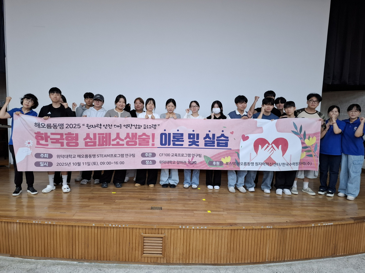 이날 세미나는 해오름동맹 STEAM교육 연구팀이 주최하고 CF100 교육프로그램연구팀이 주관했으며, 한국수력원자력㈜과 해오름동맹 원자력혁신센터가 협찬했으며, 위덕대 간호학과 재학생 16명이 참여해 안전 대응 훈련을 이수하고 한국형 심폐소생술(KBLS Provider) 자격증을 취득했다.