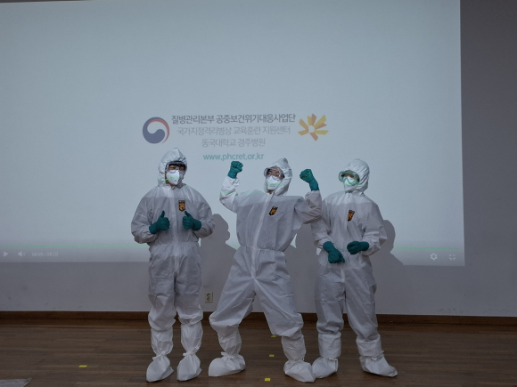 학생들은 전공 교수 및 임상 실무자의 지도 아래 보호복 착·탈의, 사례 기반 한국형 심폐소생술, 응급처치 실습 등을 수행했다.