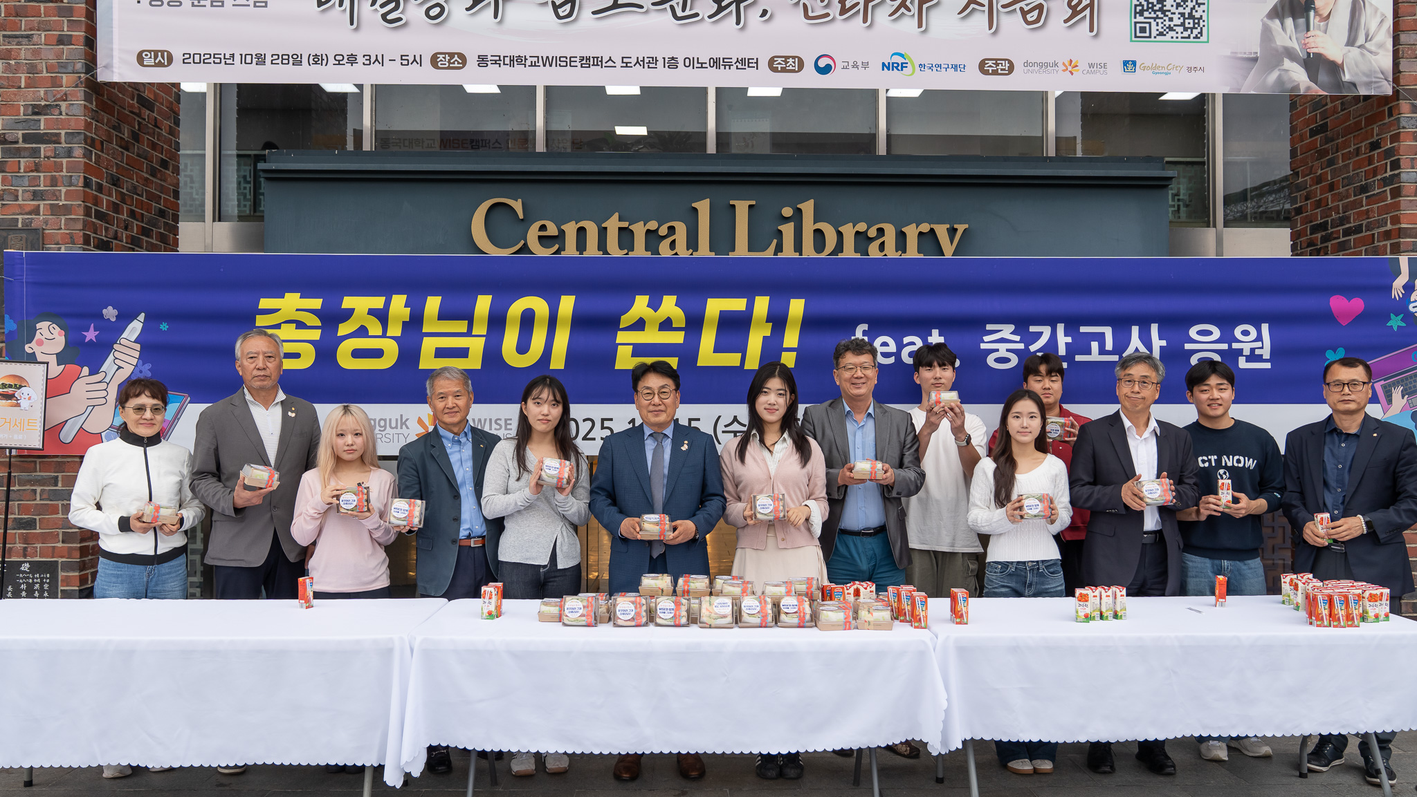 동국대학교 WISE캠퍼스가 지난 15일 교내 중앙도서관에서 중간고사 기간을 맞아 시험 준비에 힘든 재학생들을 응원하고자 간식 이벤트 행사를 진행했다.