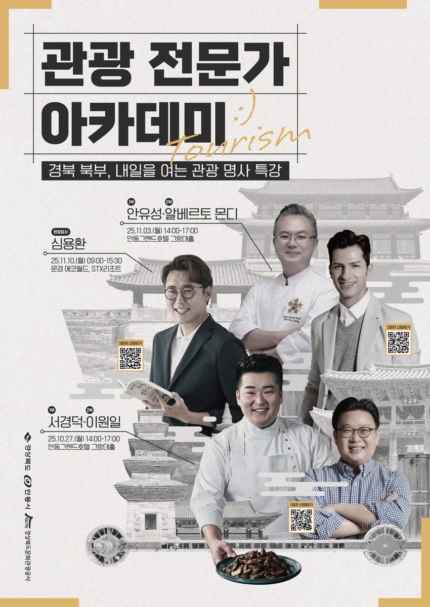 특히 마지막 회차(11/10)에는 문경 에코월드 현장견학과 함께 심용환 역사학자가‘관광지에 스며든 기억과 역사’를 주제로 강연을 진행하며, 참가자들과 함께 지역의 역사자원과 관광 콘텐츠의 접점을 모색할 예정이다.
