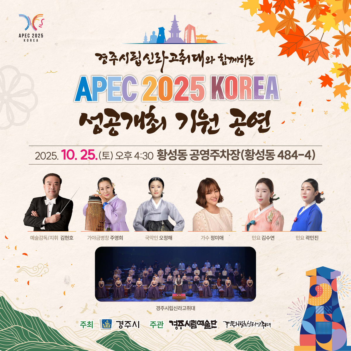 주낙영 경주시장은 “경주시립신라고취대의 이번 공연은 APEC 2025 경주의 성공개최를 염원하는 의미 있는 무대이자, 시민과 관광객이 함께 공감하는 문화축제가 될 것”이라며, “전통예술의 감동 속에서 경주의 아름다움과 한국문화의 매력을 함께 느끼시길 바란다”고 말했다.