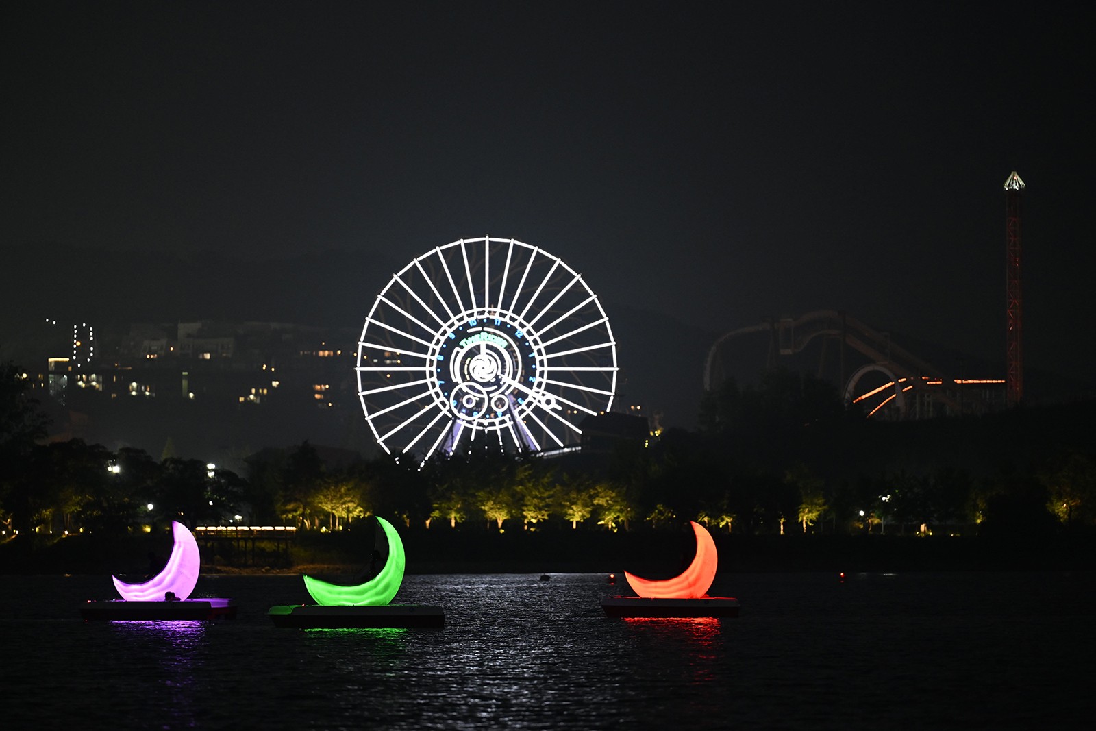 가장 먼저 5월부터 운영에 들어간 것은 글로벌코리아의 ‘경주지점 신라의달’이다. 보문호수 위를 유영하는 초승달 모양의 전동 보트로, 최대 4인 탑승이 가능하다. 블루투스 기능이 탑재돼 음악을 들으며 호수 위에서 경주의 밤을 즐길 수 있어, 커플과 가족 관광객들에게 큰 인기를 얻고 있다.