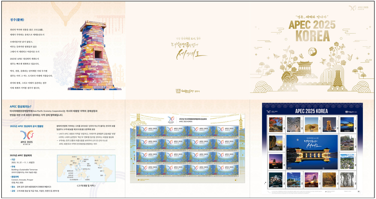 경주우체국(국장 박상숙)은 2025 APEC 정상회의의 개최를 기념하고 경주의 역사문화적 가치와 아름다움을 알리기 위해 경주시(시장 주낙영)와 협업해‘APEC 2025 KOREA 기념우표첩’을 발행한다고 밝혔다.