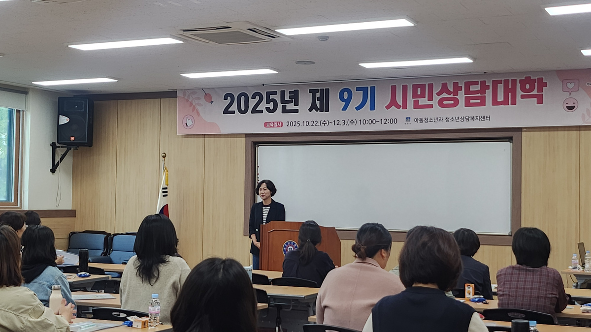 이번 시민상담대학은 10월 22일 개강식을 시작으로 12월 3일까지 총 7회 과정으로 진행되며, 청소년 상담에 관심 있는 학부모와 시민 40여 명이 참여한다.