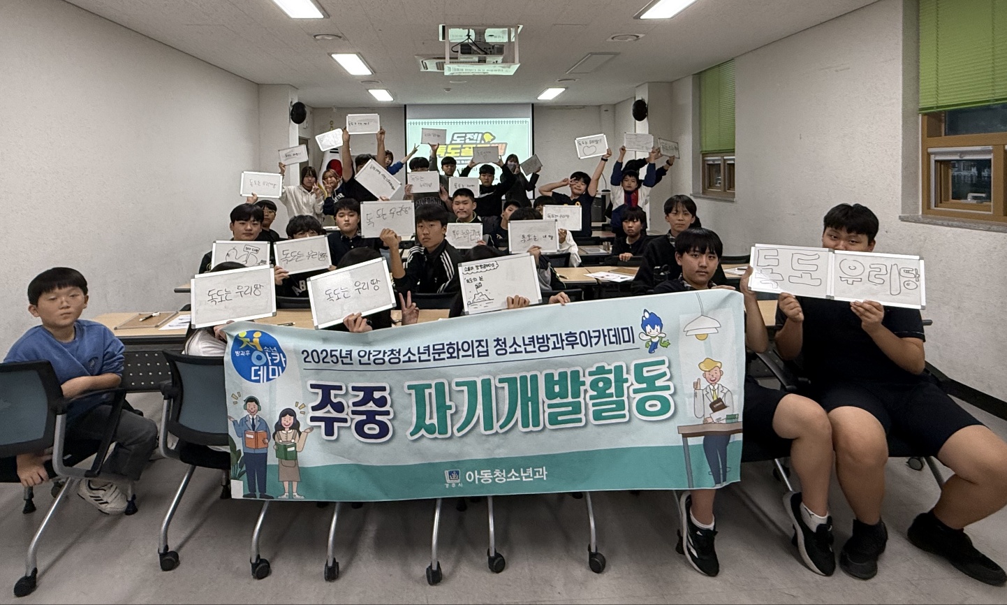 경주시는 안강청소년문화의집 청소년방과후아카데미 ‘두빛나래’가 지난 23일 ‘독도의 날(10월 25일)’을 기념해 ‘독도에 살어리랏다’를 주제로 자기개발활동을 진행했다고 밝혔다.