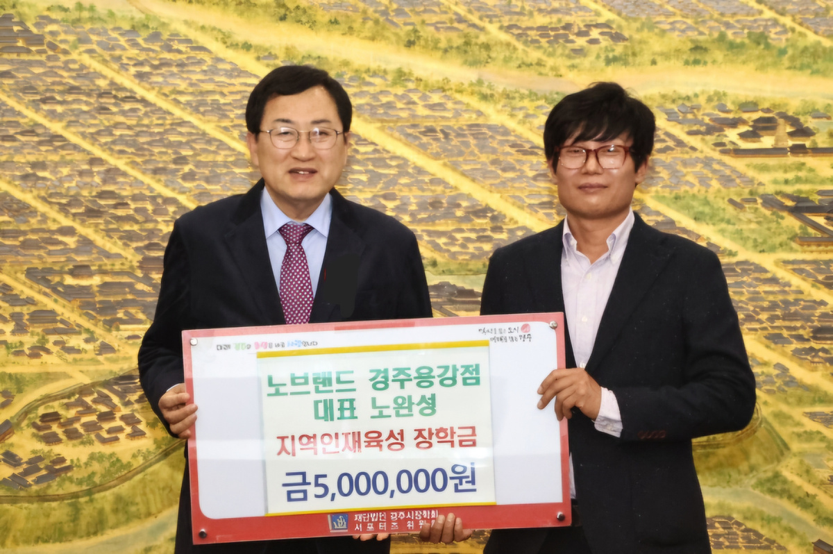 노브랜드 경주 용강점(대표 노완성)에서 지난 23일 경주를 이끌어갈 인재 육성과 지역의 교육 발전을 위해 장학금 5백만원을 기탁했다.