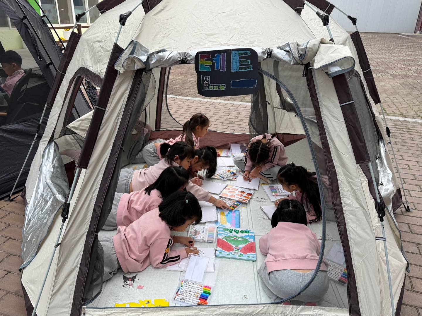 유아들은 텐트 설치를 도왔으며 캠핑장 간판을 꾸며보았다. 핫초코를 마시고 마시멜로우를 구워 먹으며 이OO 유아는 “친구들과 함께 먹으니 진짜 캠핑 온 것 같아요.”라며 소감을 말했다. 그밖의 캠핑 관련 도서 읽기, 그림 그리기, 블록 놀이 등의 정적인 활동 또한 마련하여 스스로 놀이를 선택하고 즐겨보는 유익한 시간을 보냈다.