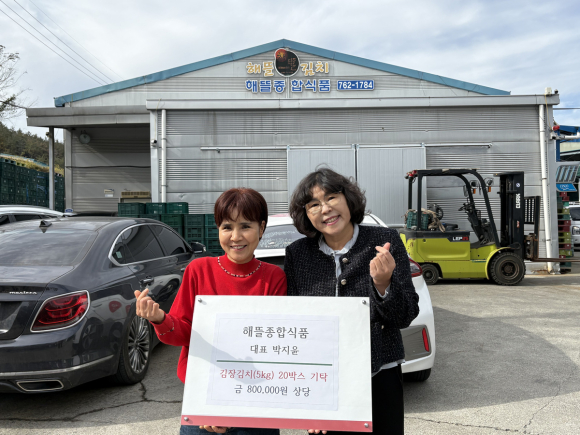 안강읍에 위치한 해뜰종합식품(대표 박지윤)이 지난 12일 지역 내 저소득층 및 복지사각지대 주민들의 따뜻한 겨울나기 지원을 위해 김장김치 20박스(약 80만 원 상당)를 성건동 행정복지센터(동장 장세용)에 기탁했다.
