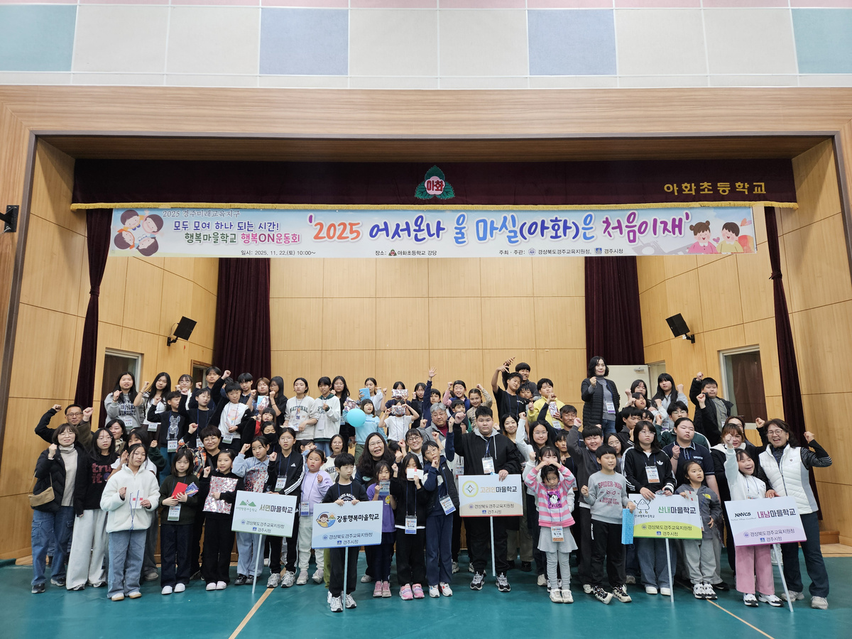 경주교육지원청(교육장 황영애)은 경주미래교육지구 마을학교 사업의 일환으로 지난 22일, 아화초등학교(교장 최상길) 강당에서 “행복마을학교 행복ON운동회”를 개최했다. 이번 행사는 지역 내 여러 마을학교가 모여 교육의 공동체적 가치를 나누는 의미 있는 시간으로 꾸며졌다.